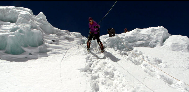 I am attaching some photos from when we were at ABC – We practiced because some people never used fixed ropes before so we all had chance to demonstrate out climbing skills. It was fun.”